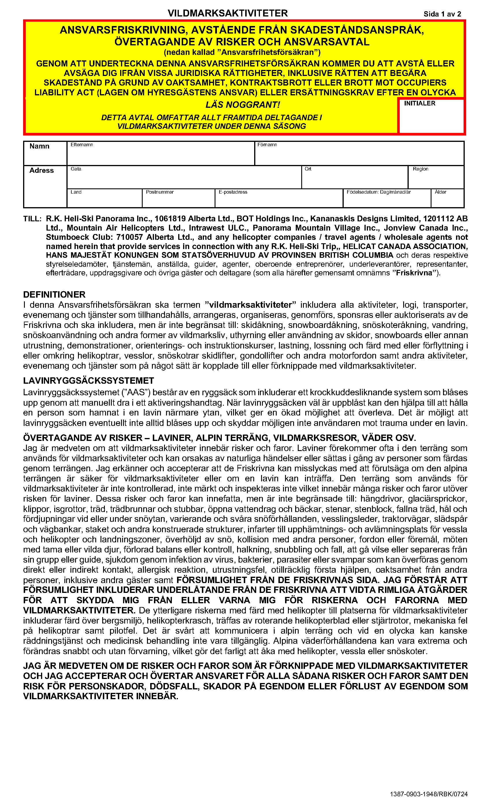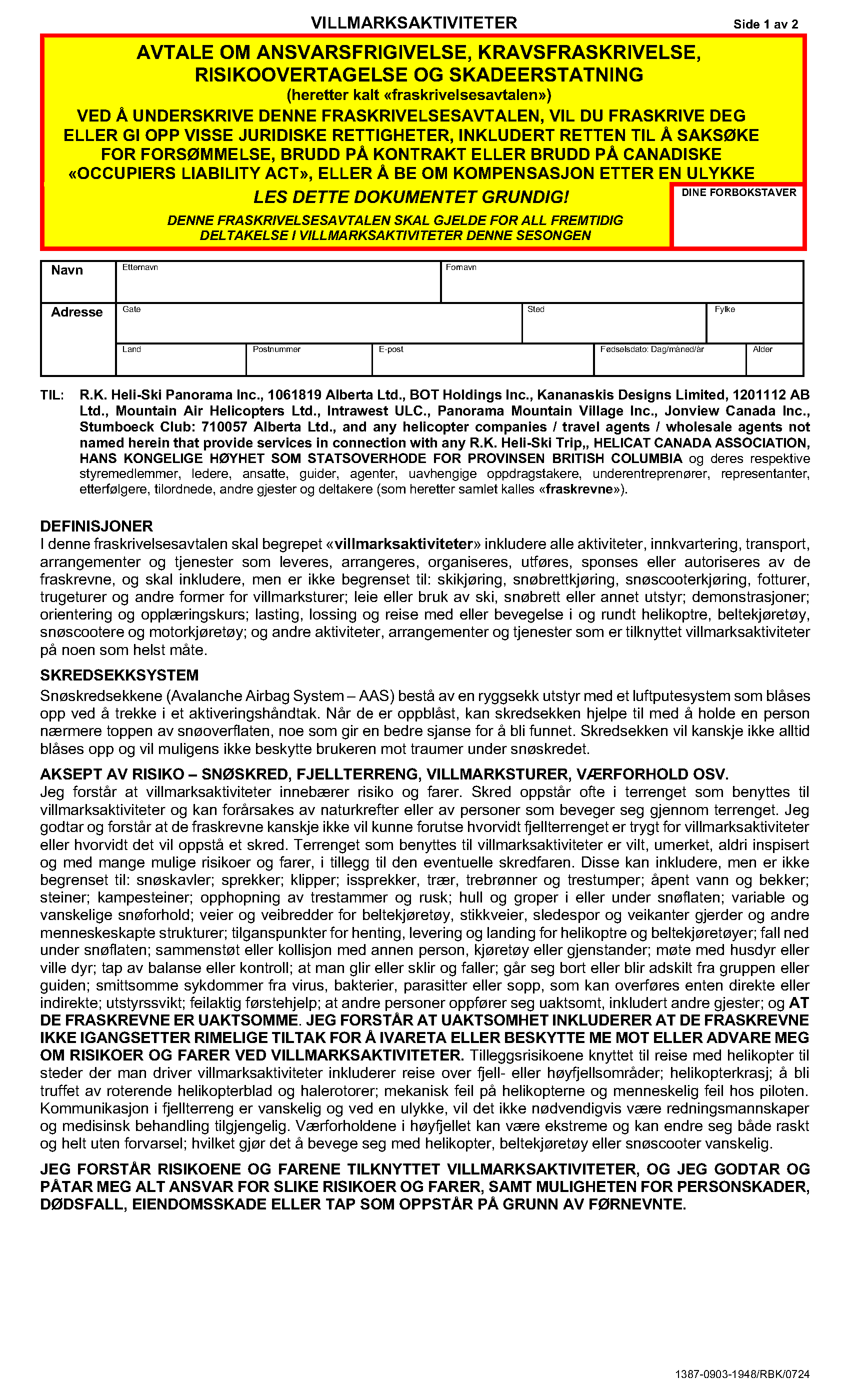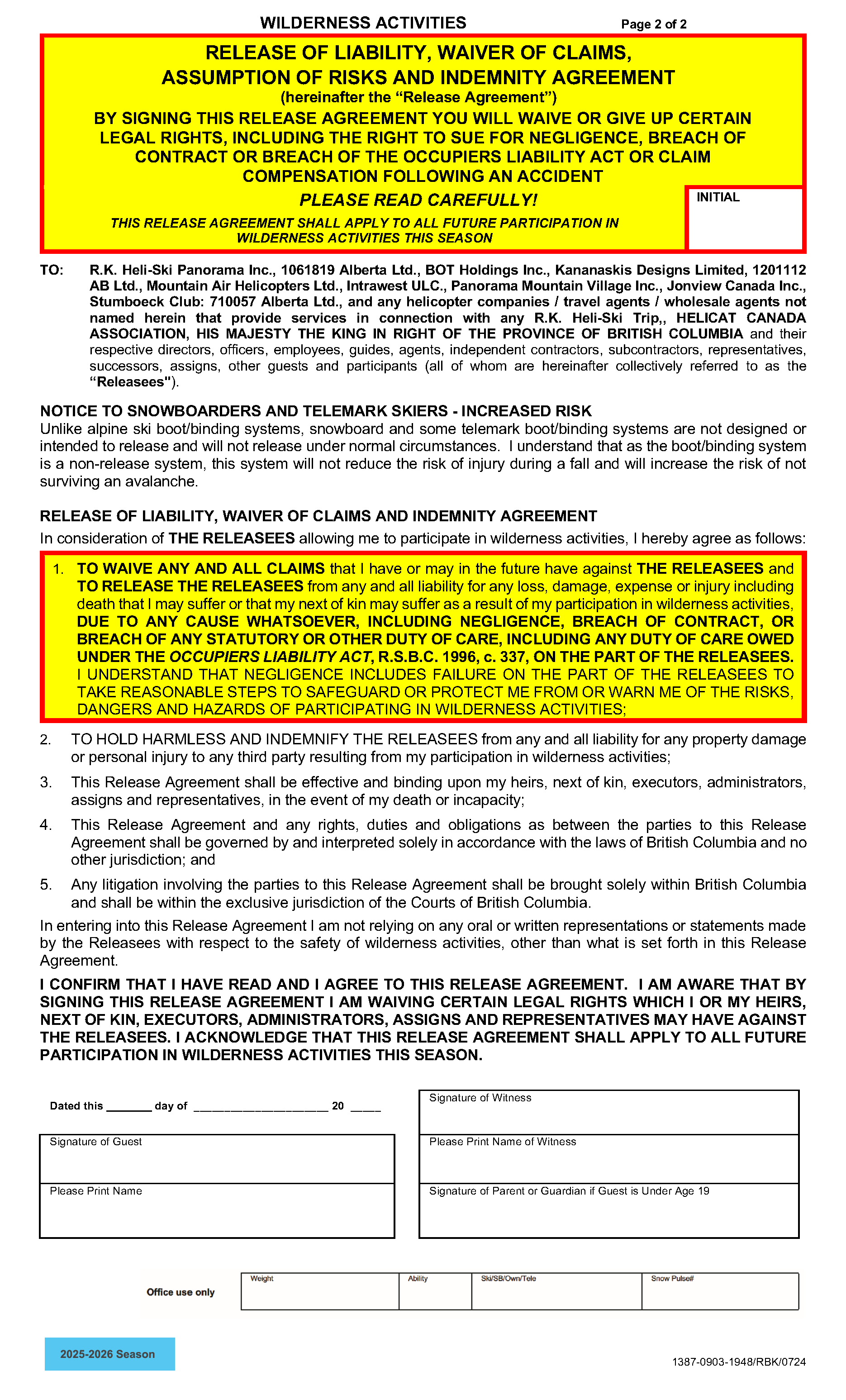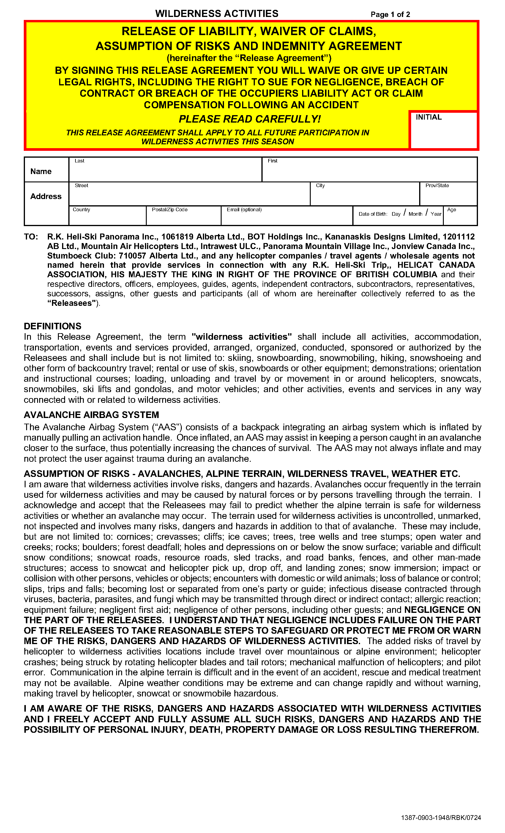 Please read the Wilderness Waiver Activity form. When you have finished reading it please check the box at the bottom and move onto step 2.